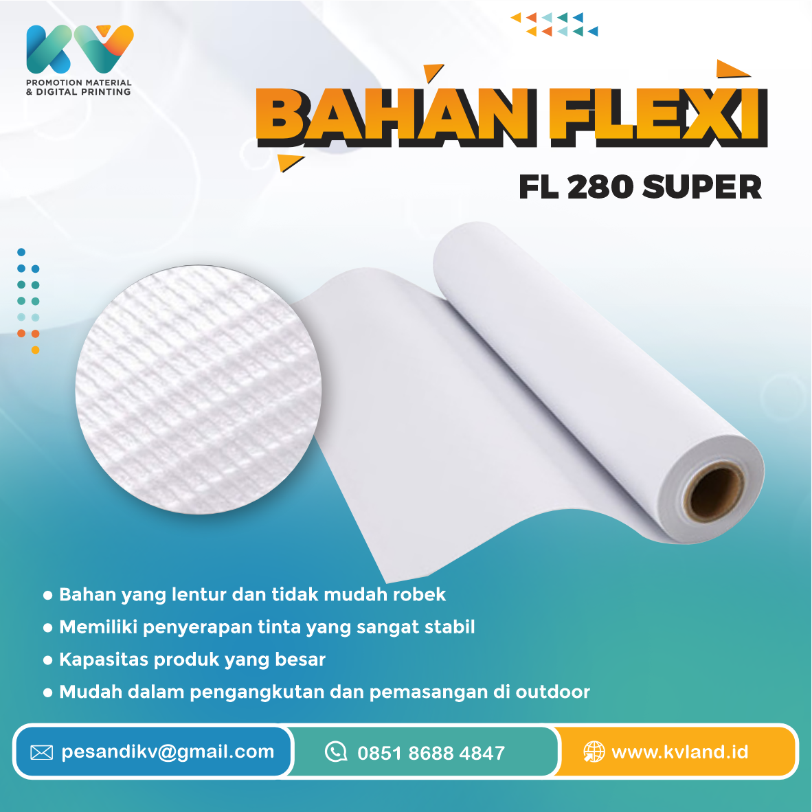 Bahan flexi China 280g yang paling sering digunakan masyarakat kerap kali digunakan untuk di luar ruangan dan  memiliki kelebihan harga yang sangat terjangkau.
